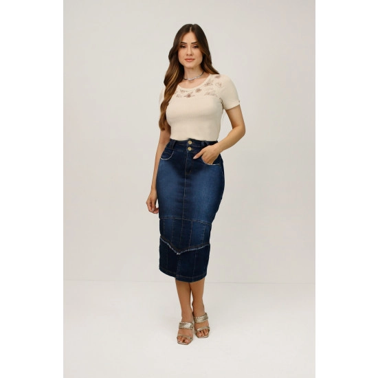 Saia Sofi Jeans Fenda Frontal Nítido Primavera/Verão 2025