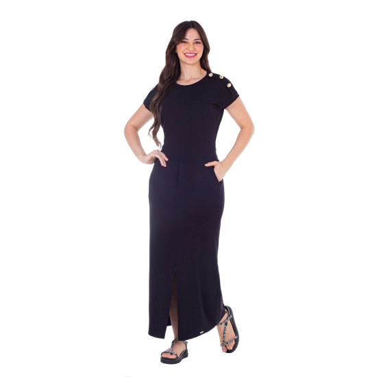 Vestido Suelen Em Malha Com Fenda Frontal Preto Hapuk Primavera/Verão 2025