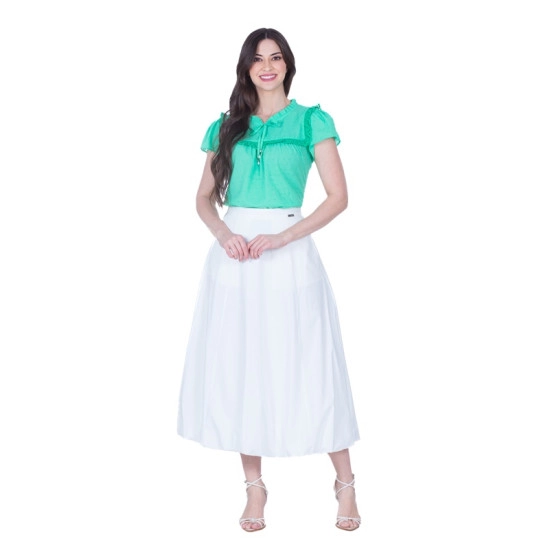 Blusa Ravena em Tecido Plano Texturizado com Detalhe em Guipir Verde Hapuk Primavera/Verão 2025