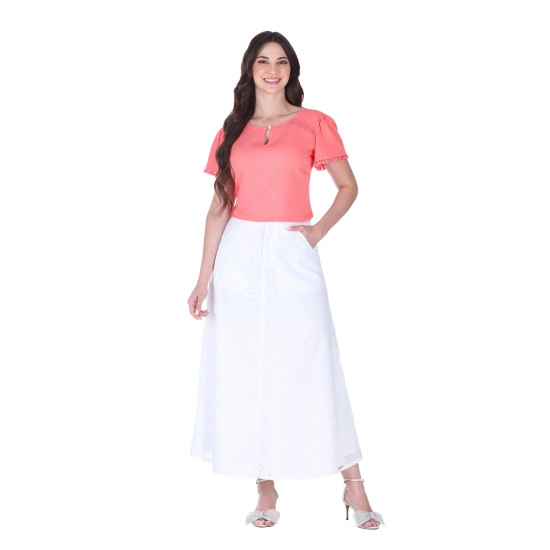 Blusa Paula Em Tecido Plano Com Franjinha Nas Barras Coral Hapuk Alto Verão 2025