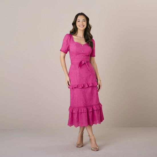 Vestido Franciele Em Laise Maldivas Com Zíper Nas Costas Rosa Tatá Martello Alto Verão 2025
