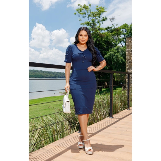 Vestido Bianca Em Malha Moletinho Azul Maria Amore Alto Verão 2025