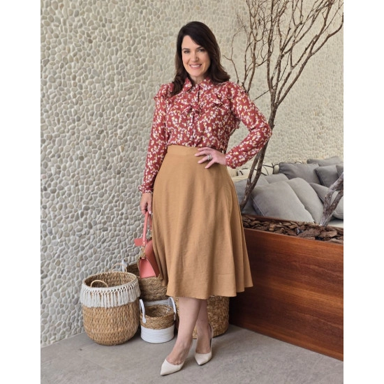 Saia Ludmila Em Crepe Caramelo Maria Amore Outono/Inverno 2025