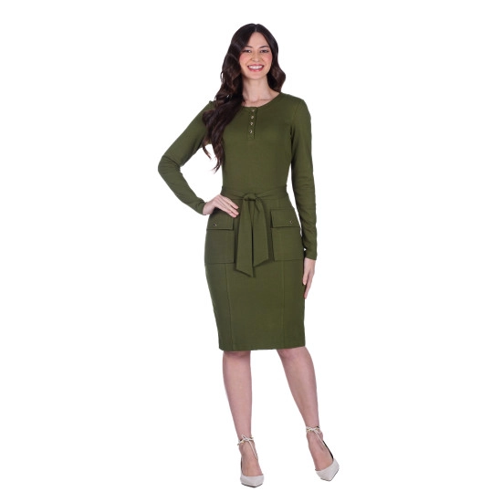 Vestido Fatima Em Ponto Roma Verde Militar Hapuk Outono/Inverno 2025