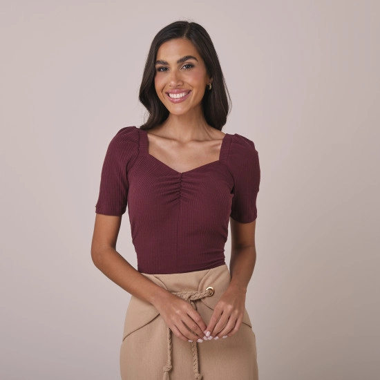 Blusa Mariana Em Geo Alva Rib Marrom Tatá Martello Outono/Inverno 2025