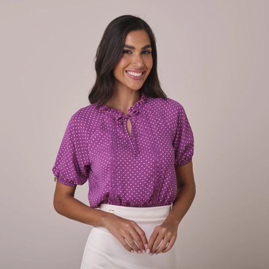 Blusa Eloah Em Crepe Poá Com Renda Lilás Tata Martello Primavera/Verão 2026