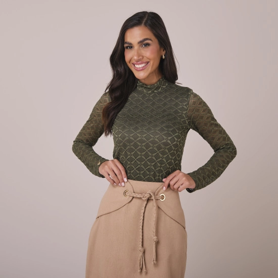 Blusa Lidia Em Malha Rendada Verde Tatá Martello Primavera/Verão 2026