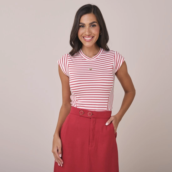 Blusa Laura Em Malha Listrada Vermelho Tatá Martello Primavera/Verão 2026