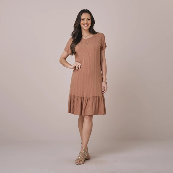 Vestido Aline Em Canelado Tracy Bege Tatá Martello Primavera/Verão 2026