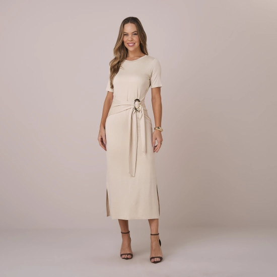 Vestido Marcia Em Malha Vicenza Bege Tatá Martello Primavera/Verão 2026