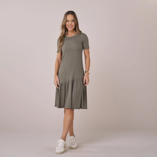Vestido Cleo Em Malha Zambia Verde Musgo Tatá Martello Primavera/Verão 2026