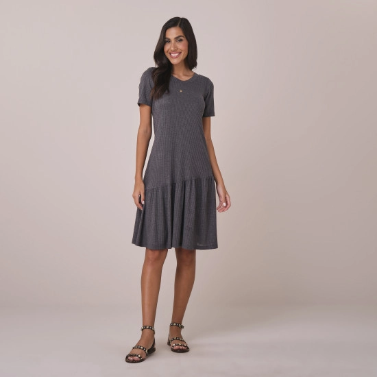 Vestido Cleo Em Malha Zambia Cinza Tatá Martello Primavera/Verão 2026