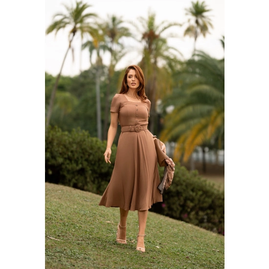 Vestido Elisa Em Twill Marrom Jany Pim Primavera/Verão 2026