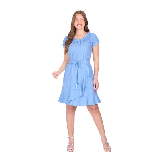 Vestido Iris Em Tecido Plano Maquinetado Azul Hapuk Primavera/Verão 2026