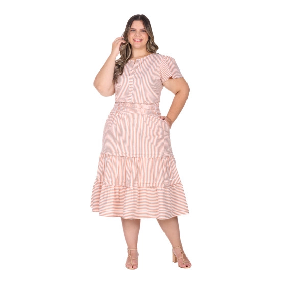 Vestido Regiane Em Tecido Plano Listrado Bege Hapuk Primavera/Verão 2026