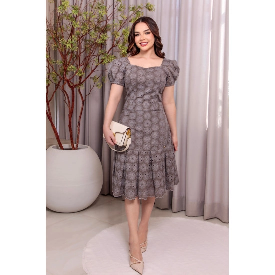 Vestido Nataly Em Lese De Algodão Cinza Maria Amore Primavera/Verão 2026