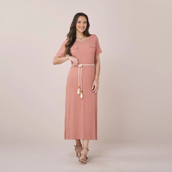 Vestido Amalia Em Malha Capri Rose Tatá Martello Primavera/Verão 2026