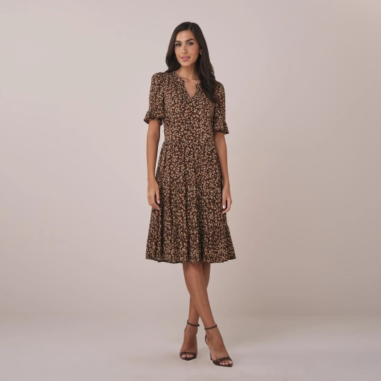 Vestido Natany Em Viscose Print Marrom Tatá Martello Primavera/Verão 2026