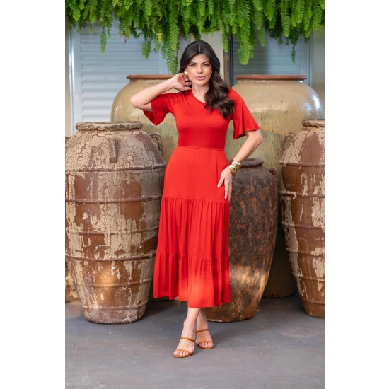 Vestido Em Viscolycra Terracota Mulher Morena Primavera/Verão 2026