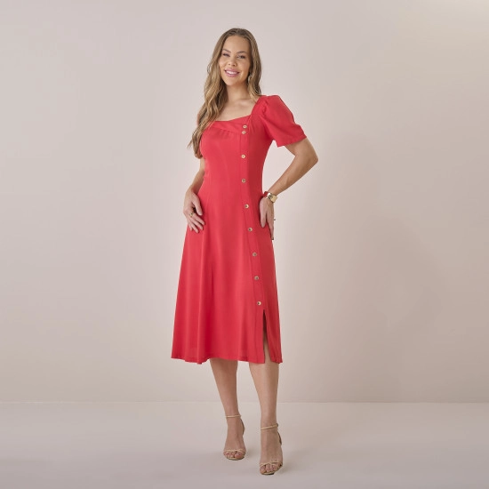 Vestido Maya Em Viscolinho Rayon Vermelho Tatá Martello Primavera/Verão 2026