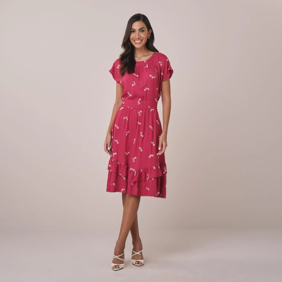 Vestido Paula Em Crepe Bordado Vermelho Tatá Martello Primavera/Verão 2026