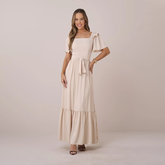 Vestido Leticia Em Crepe Tangier Bege Tatá Martello Primavera/Verão 2026