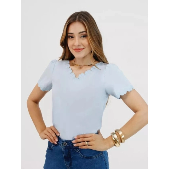 Blusa Marlina Em Crepe Azul Nitido Primavera/Verão 2026