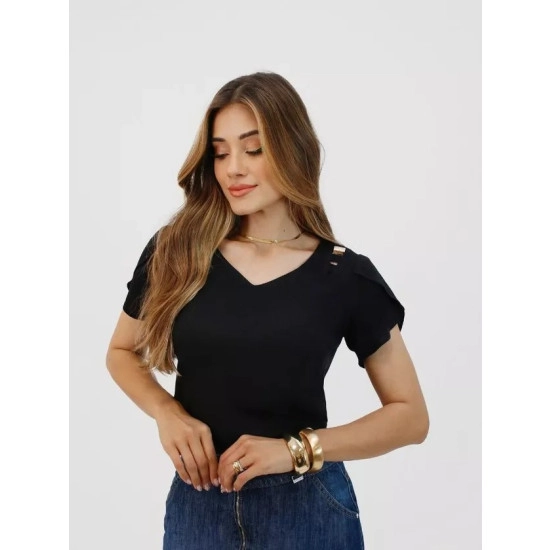 Blusa Samira Em Viscolinho Preta Nitido Primavera/Verão 2026