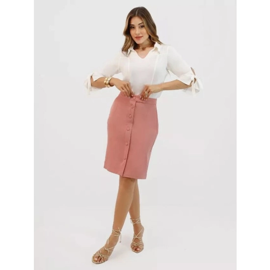 Saia Lily Em Alfaiataria Secretária Rosa Nítido Primavera/Verão 2026