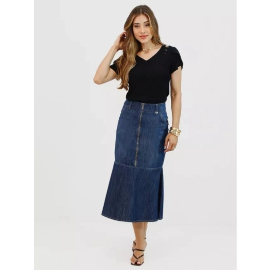 Saia Lari Em Jeans Nítido Primavera/Verão 2026
