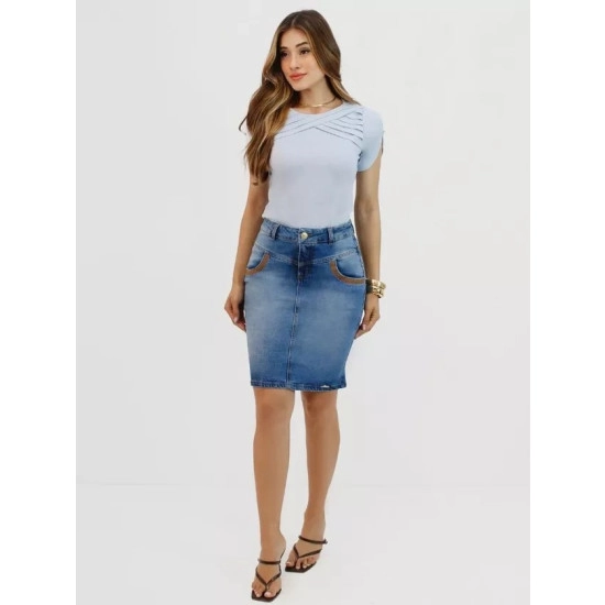 Saia Santina Em Jeans First Denim Nítido Primavera/Verão 2026