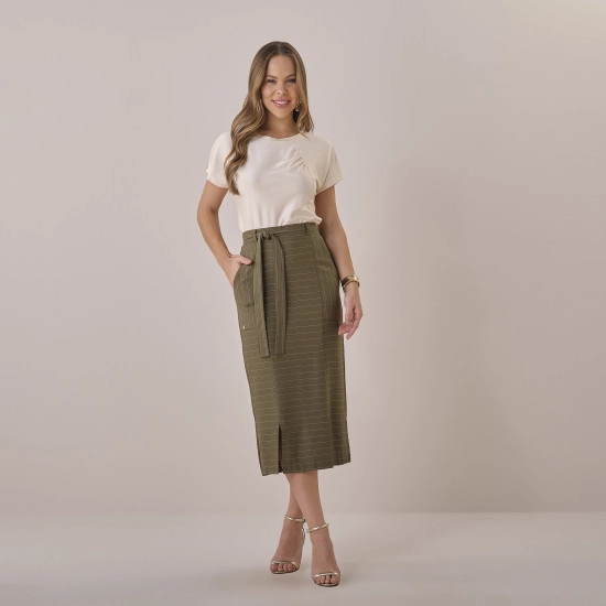Saia Samanta Em Llinho Risca De Giz Verde Tatá Martello Primavera/Verão 2026