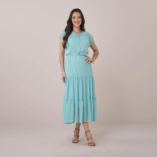 Vestido Edneia Em Chiffon Poa Azul Tatá Martello Primavera/Verão 2026