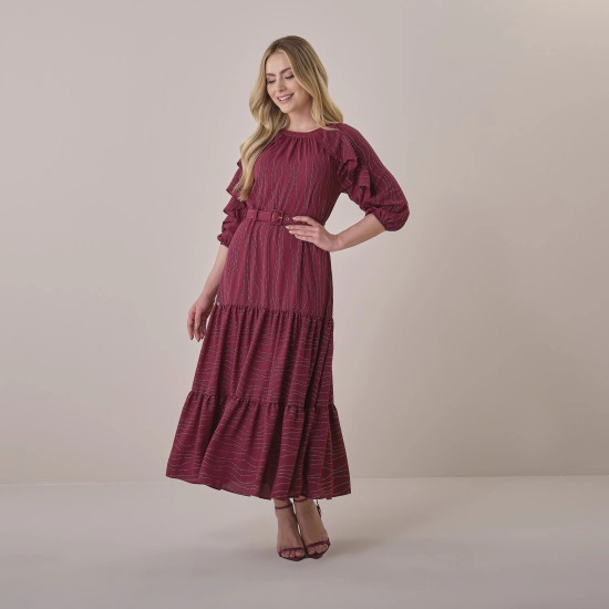 Vestido Mariah Em Crepe Com Brilho Marsala Tatá Martello Primavera/Verão 2026