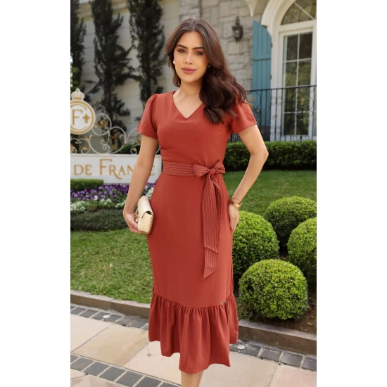 Vestido Thereza Em Crepe Telha Maria Amore Primavera/Verão 2026