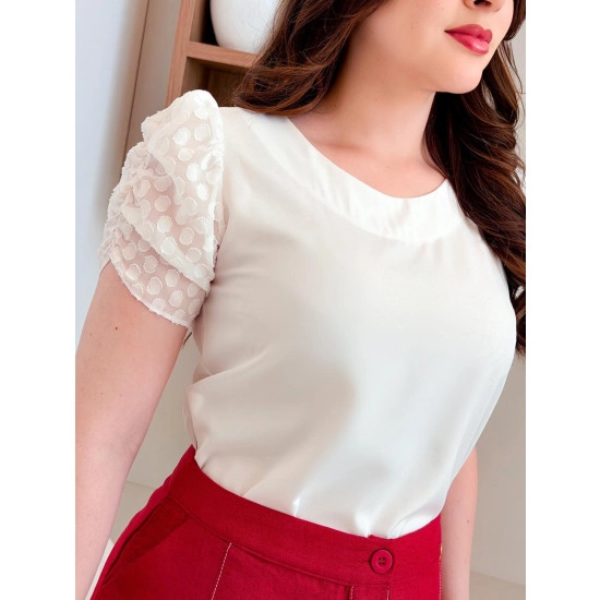 Blusa Andressa Em Tecido Crepe Off White Maria Amore Primavera/Verão 2026