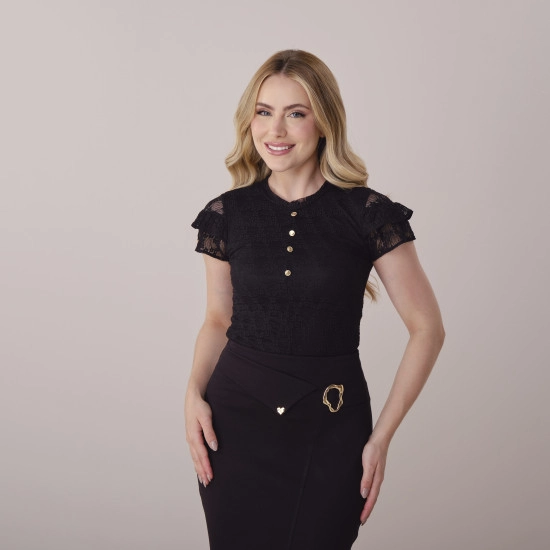 Blusa Silvia Em Renda Chilon Preto Tata Martello Primavera/Verão 2026
