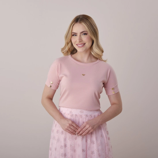 Blusa Cintia Em Malha Canelada Rosa Tata Martello Primavera/Verão 2026