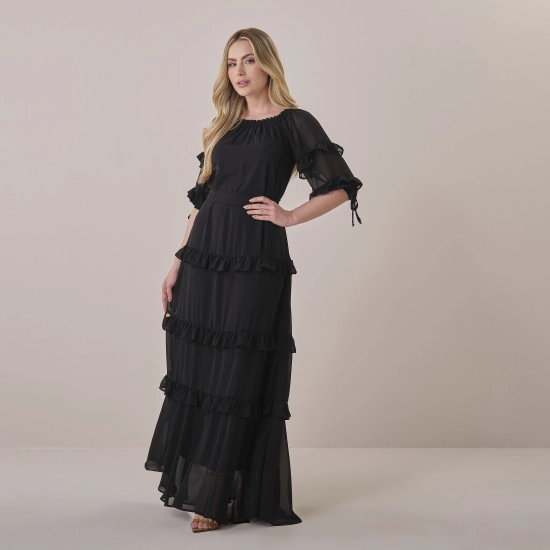 Vestido Cassia Em Chiffon Saab Preto Tata Martello Primavera/Verão 2026