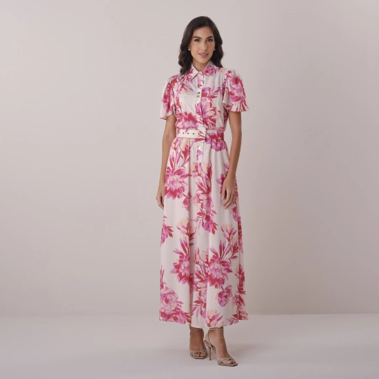 Vestido Marilia Em Crepe Gloss Estampa Exclusiva Branco Tata Martello Primavera/Verão 2026