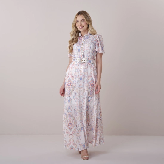 Vestido Marilia Em Crepe Gloss Estampa Exclusiva Off White Tata Martello Primavera/Verão 2026