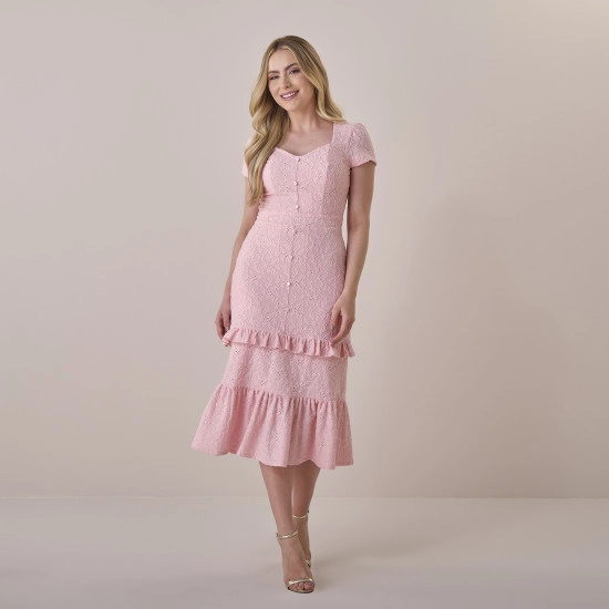 Vestido Helenice Em Renda Jacquard Rosa Tata Martello Primavera/Verão 2026