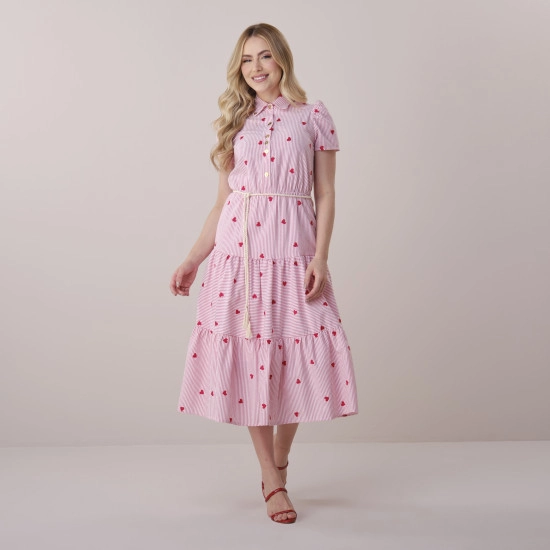Vestido Renata Em Stripe Bordado Coração Rosa Tata Martello Primavera/Verão 2026