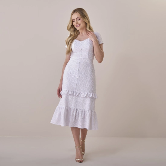 Vestido Helenice Em Renda Jacquard Branco Tata Martello Primavera/Verão 2026