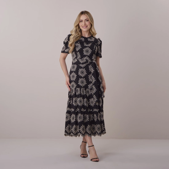 Vestido Eliane Em Bordado Camila Com Renda Preto Tata Martello Primavera/Verão 2026