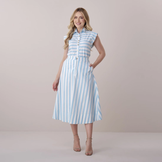 Conjunto Serena Em Tricoline Listrada Azul Tata Martello Primavera/Verão 2026
