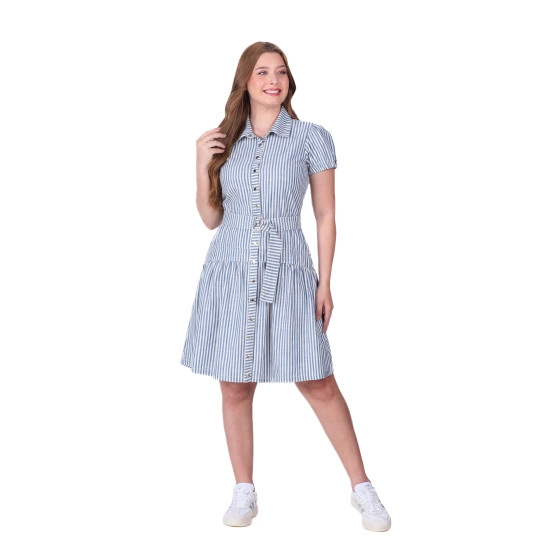 Vestido Isabel Em Jeans Listrado Azul Hapuk Primavera/Verão 2026