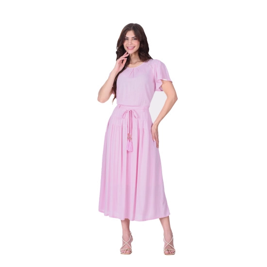 Vestido Naila Em Tecido Plano De Viscose Rosa Hapuk Primavera/Verão 2026