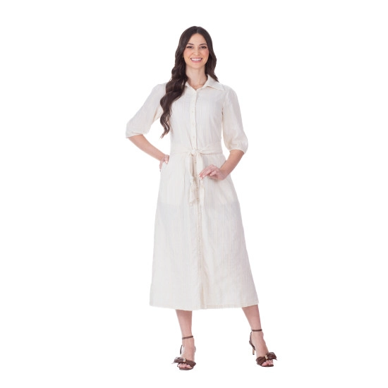 Vestido Pérola Em Tecido Plano Maquinetado Branco Hapuk Primavera/Verão 2026
