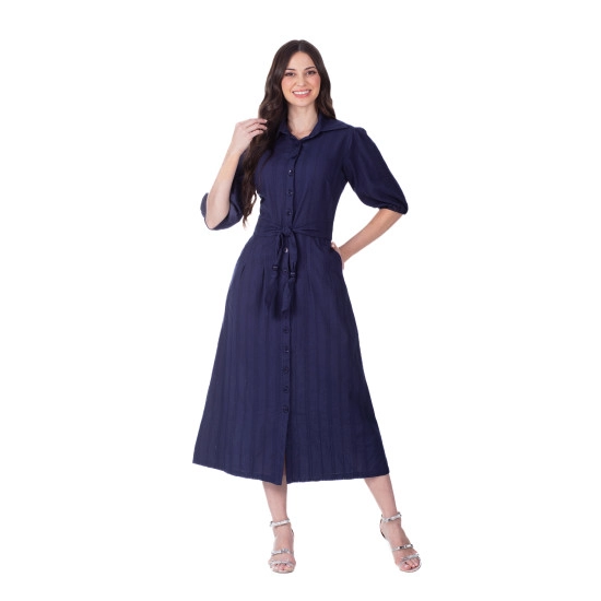 Vestido Pérola Em Tecido Plano Maquinetado Azul Noite Hapuk Primavera/Verão 2026